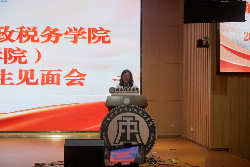 院长致辞并介绍校情院情李林木院长代表学院师生向2025级新同学的到来表示由衷的祝贺和热烈的欢迎,欢迎新生成为财税大家庭的一员。在校情院情的讲解中,李林木院长向同学们介绍了广东财经大学和财政税务学院(税务师学院)的创建历史和发展概况。财政税务学院(税务师学院)秉持学校“习礼乐文,精于术业”的办学宗旨,突出学院“理财治税求真,诚行精业唯本”的办学理念,组建了一支素质高、实践经验丰富的教师队伍,其中包括多名获得国家级和省级荣誉的专家。学院作为学校省级优势重点学科应用经济学的重要组成部分,拥有学士、硕士和博士相衔接的完整人才培养体系。拥有三个硕士学位授权点(财政学学术硕士学位、税务专业硕士学位、资产评估专业硕士学位)以及应用经济学博士学位授权点(财政学方向),设有财政学、税收学、资产评估三个本科专业以及税收学“3+1”本硕连读国际化办学项目。经过多年的传承与发展,学院形成了凝聚人、激励人的文化氛围,形成了优良的院风教风学风,进一步推动学院的发展与建设。李林木院长在致辞中希望新同学们要做“四有”大学生:有明确的志向目标,有优秀的思想品德,有学习和思考能力,有过硬的综合素质,争当自主、自立、自强的财税学子。