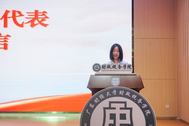 2025级本科新生代表发言2025级资产评估(评估师)专业的林畅跃同学作为本科生代表发言。在发言中,林畅跃同学表示,财税学子要以“挤”和“钻”的劲头学好专业课程,将知识学深、学透、学活,努力成长为符合社会发展需求的财税人才,并呼吁大家打破理论与实践壁垒,积极投身社会实践,做到知行合一;通过志愿服务涵养品格,响应时代召唤,奉献青春力量。最后她呼吁大家当以“厚德”守初心、“励学”强本领、“笃行”练真功、“拓新”谋发展,不断打磨专业能力、塑造责任担当。