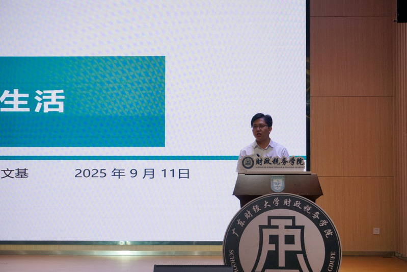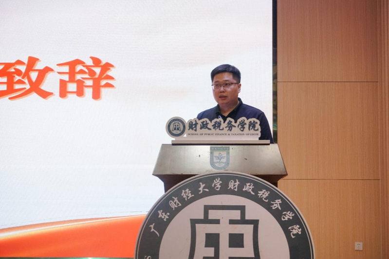 书记致辞暨思政第一课学院党委书记刘文基在致辞中围绕“梦想、规划、实践”三个关键词展开阐述。在致辞中,他强调,大学阶段应当树立远大理想与明确目标,建议同学们深入思考、尽早确立方向,科学规划大学生活,通过实践持续落实个人发展路径,并注重反思与总结。刘文基书记特别指出,要增强自我认知能力,不断追求更高目标,努力成长为肩负民族复兴重任的时代新人。在思政第一课中,刘文基书记阐述了加入中国共产党的重大意义,鼓励同学们坚定理想信念,始终坚守为人民服务的初心使命,并号召大家听党话、跟党走,争做有理想、敢担当、能吃苦、肯奋斗的新时代青年,将个人理想融入党和国家事业大局,展现财税学子的青春朝气与责任担当。