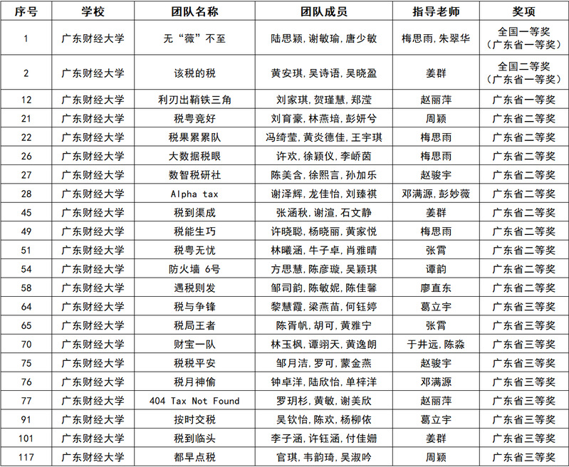 财政税务学院在本届比赛国赛及省赛获奖名单