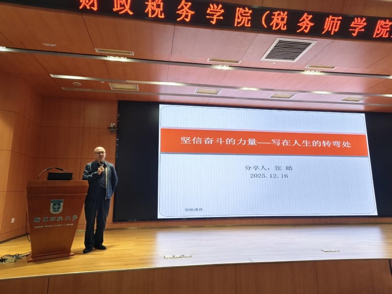 张皓以《坚信奋斗的力量———写在人生转弯处》为题分享实践经验。他结合自身职业发展历程,紧扣“奋斗” 核心主题,用真挚的话语与同学们畅谈成长感悟、分享实践心得,为即将步入职场、面临人生转折的同学们注入了昂扬向上的精神能量与砥砺前行的奋进动力。