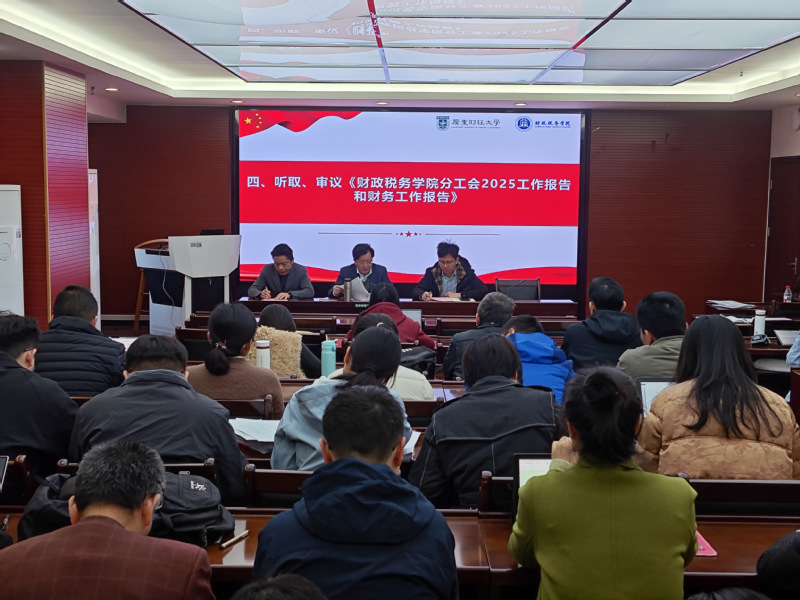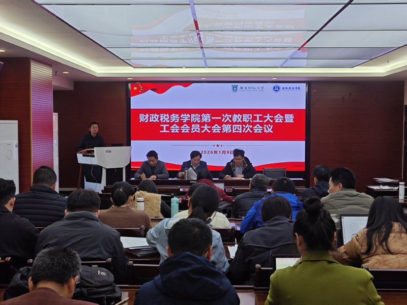 2026年1月9日上午,财政税务学院分工会召开工会会员大会,全体教职工齐聚立德楼338会议室。会议由党委书记刘文基主持。