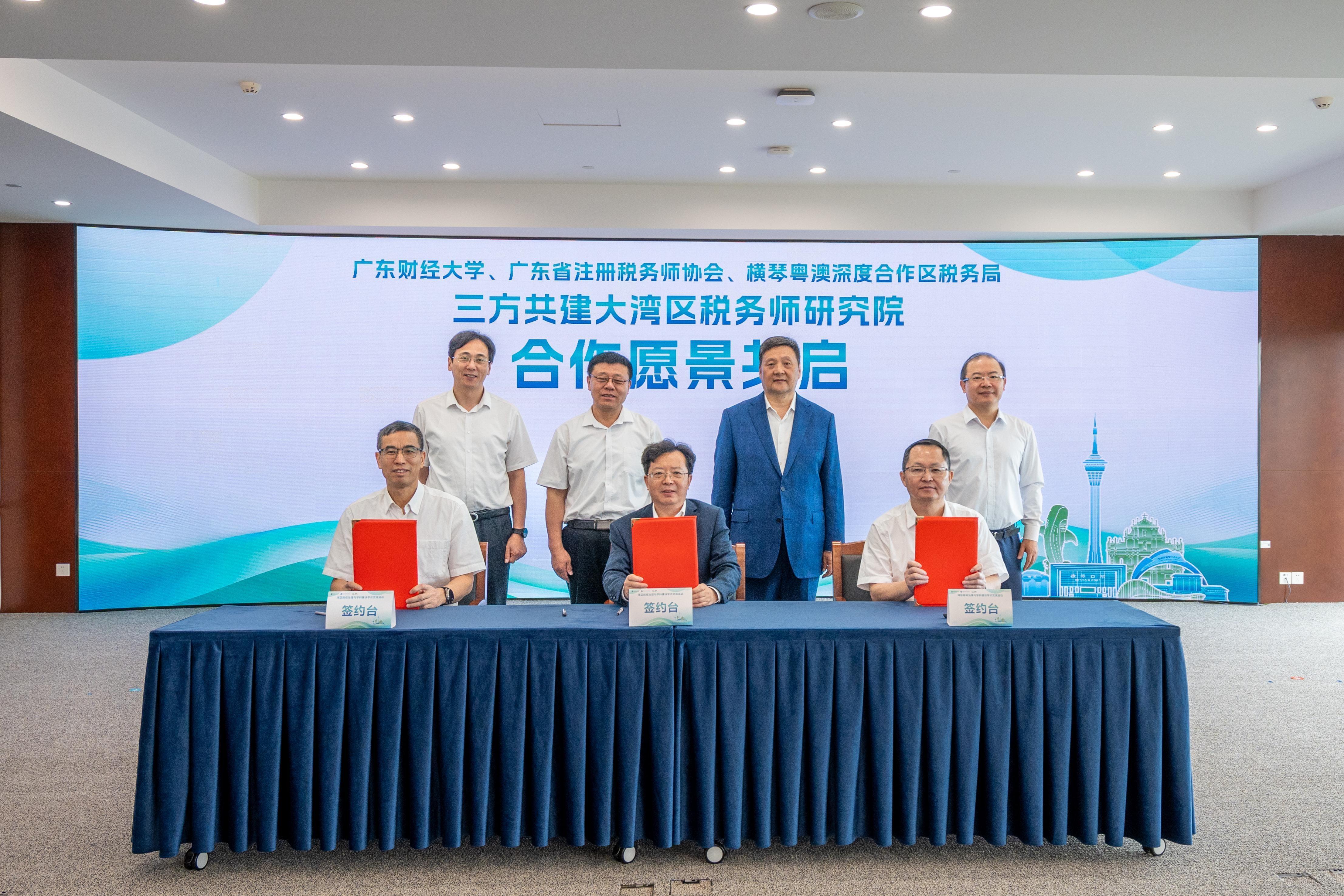 为深入贯彻落实习近平总书记关于税收工作的重要论述和党中央关于数字化转型条件下的税费征管“强基工程”的决策部署,全面加强税务合规建设与理论研究,加快培养高素质复合型涉税专业人才,2026年4月23日,广东财经大学、广东省注册税务师协会与国家税务总局横琴粤澳深度合作区税务局在横琴粤澳深度合作区联合举办三方共建大湾区税务师研究院合作签约仪式暨“湾区税收治理现代化与涉税学科建设”学术研讨会。