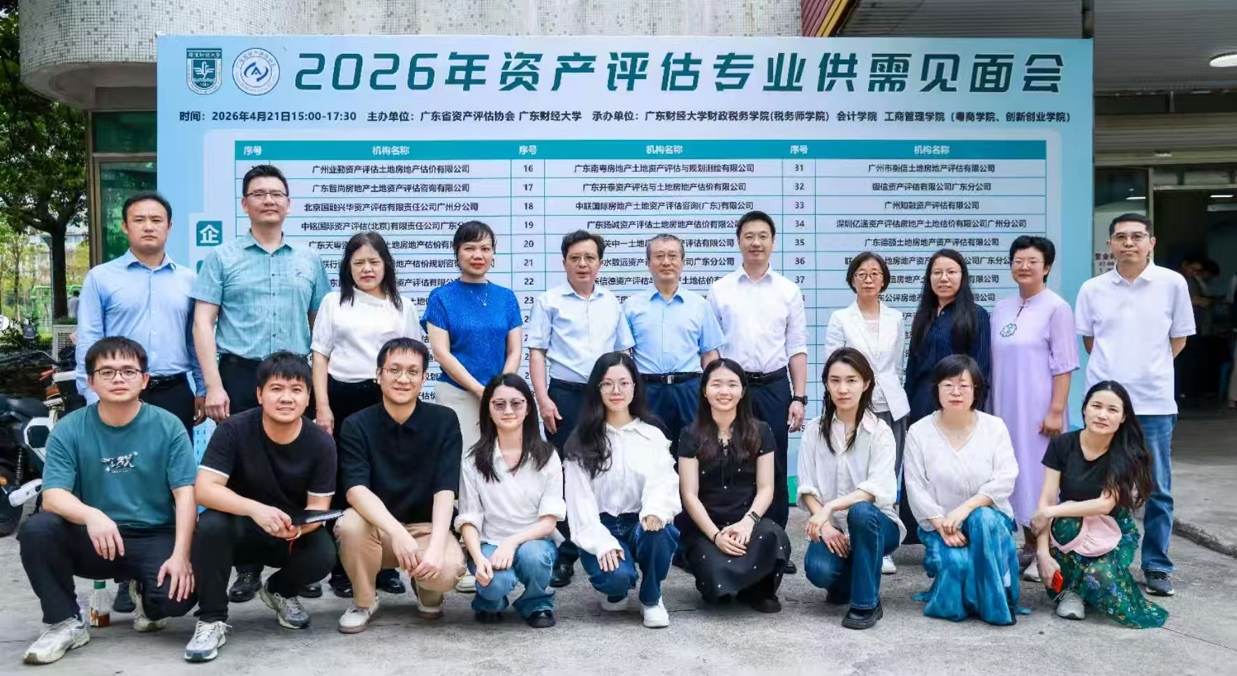 为深入贯彻落实广东省“百万英才汇南粤”2026年行动计划,切实推进高校毕业生高质量充分就业,4月21日下午,由广东省资产评估协会与广东财经大学联合主办的2026年资产评估专业供需见面会,在我校大学生就业服务中心顺利举办。广东省资产评估协会会长戴穗生,广东财经大学财政税务学院院长李林木,协会及学校相关职能部门负责人、财政税务学院领导班子、资产评估系主任及专业教师代表莅临现场指导。
